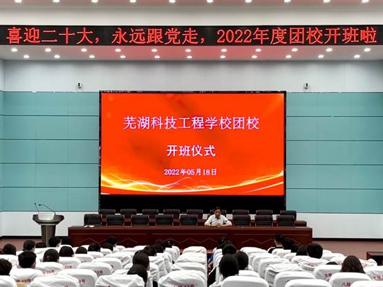 为贯彻落实习近平总书记关于团员先进性的重要指示精神和团的十八大精神,切实在团员标准要求上严起来,突出政治标准和道德素养,使入团条件具体化,严格入团程序,切实从源头上确保发展团员质量,芜湖科技工程学校于2022年5月18日晚18:00在校报告厅举行团校开班仪式。开班仪式由校团委缪潘婷老师主持,校党支部书记金根木出席仪式。
