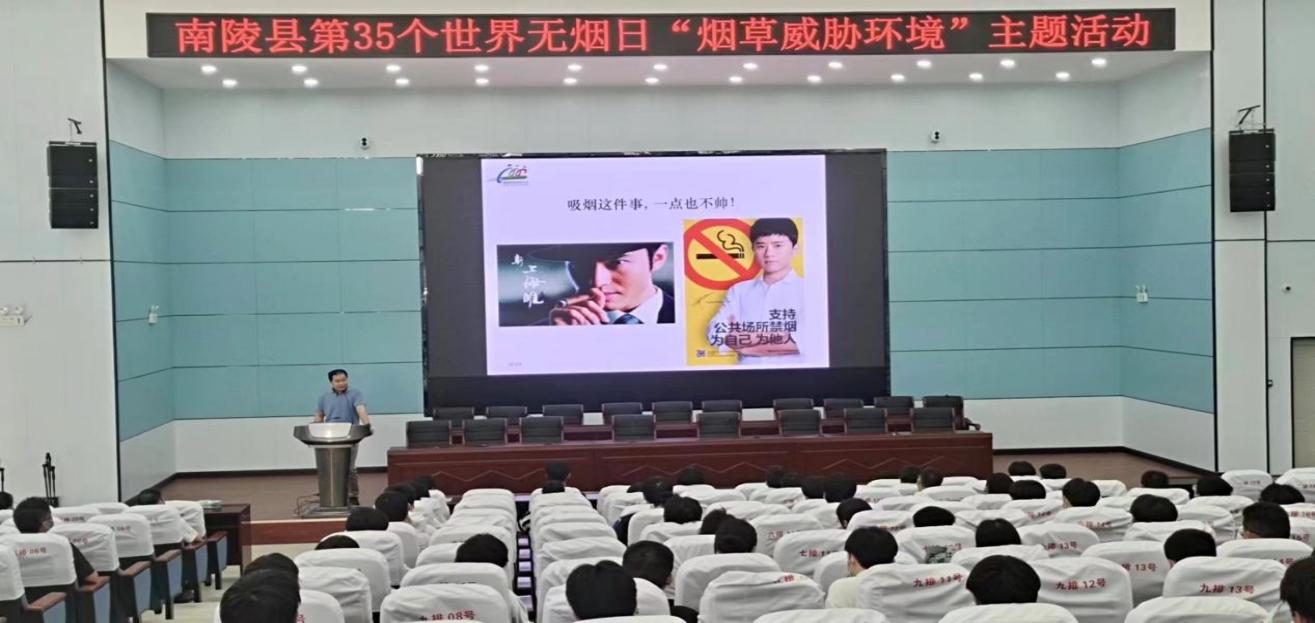2022年5月31日是第35个“世界无烟日”。为深入贯彻落实《健康中国行动(2019-2030年)》控烟行动有关要求,加强校园控烟科普宣传,助力学生健康成长,5月30日上午10点,市、县疾控中心在我校报告厅开展“烟草威胁环境”主题教育活动,校学生处陈帮强主任主持,县疾控中心闻晓敏科长就主题教育意义进行强调,最后由市疾控中心李喆科长向我校师生宣讲控烟知识。