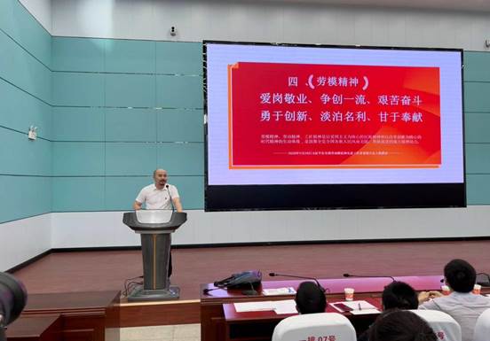 (图为本次道德讲堂“习理论”环节,芜湖职业技术学院马和平教授做宣讲)