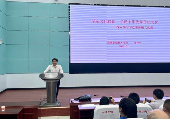 (图为本次道德讲堂“传文化”环节,芜职申睿教授讲解“端午节”文化常识)