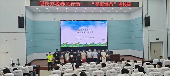 (图为本次“春雨润苗进校园”活动我校学生与胡文禹一行税务团队合影)