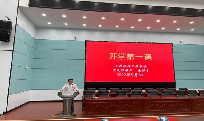 9月5日,金秋送阳,校园里处处洋溢着青春的气息。我校党支部书记金根木同志在校报告厅给22级新生上了一堂别开生面的“开学第一课”,共迎新学期的到来。“开学第一课”以央视新闻县域经济看南陵视频为切入点,介绍家乡之美,人才之缺,职教之需,以芜湖职业技术学院职教航母带动我校发展取得的成绩,共同感悟南陵县职教春天的到来。
