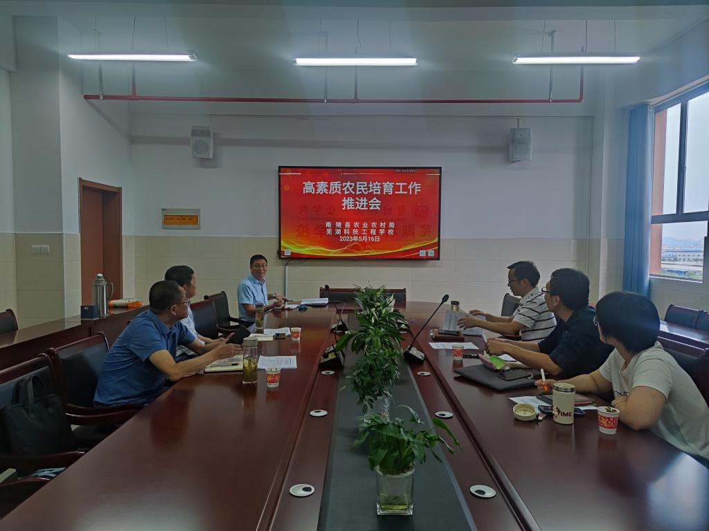 为进一步践行职业教育服务乡村振兴的初心使命,推动教育链、人才链、产业链与创新链有效衔接。5月16 日,芜湖职业技术学院联合南陵县农业农村局在我校召开乡村振兴协同服务中心建设暨高素质农民培育工作推进会。出席会议的有,芜湖科技工程学校副校长安宗权,芜湖职业技术学院科研处王韬远、葛雯。南陵县农业农村局农广校校长王峻枫、南陵县农业农村局总农艺师桂云波等。