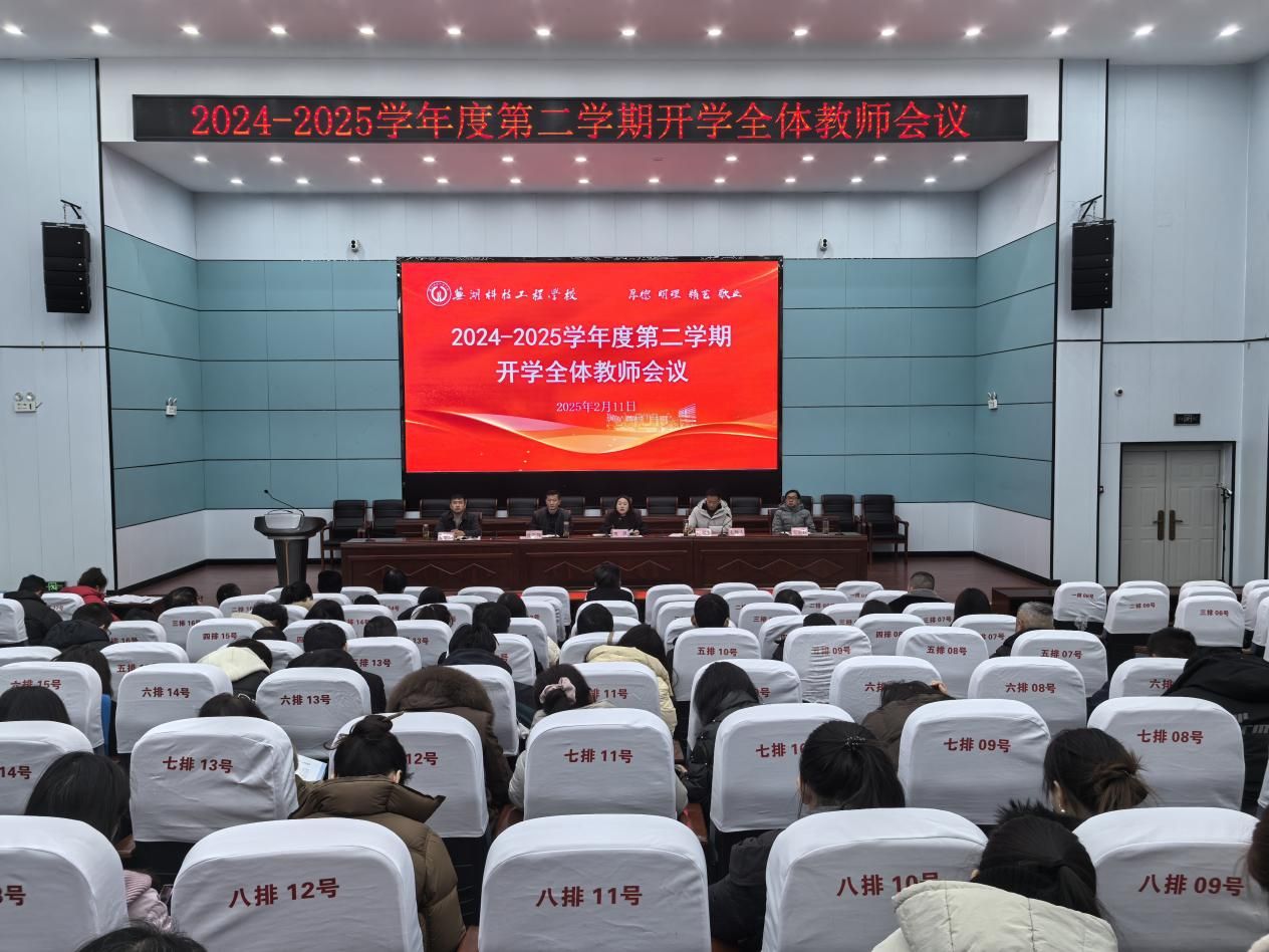金蛇携瑞启新程,春风送暖绘锦章。2月11日,芜湖科技工程学校召开2024—2025学年度第二学期开学全体教师会议。学校党总支书记萧晟等校领导和全体教职工齐聚一堂,携手奔赴充满挑战与希望的新征程。此次会议由党总支副书记、校长周自宝主持。