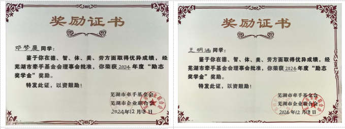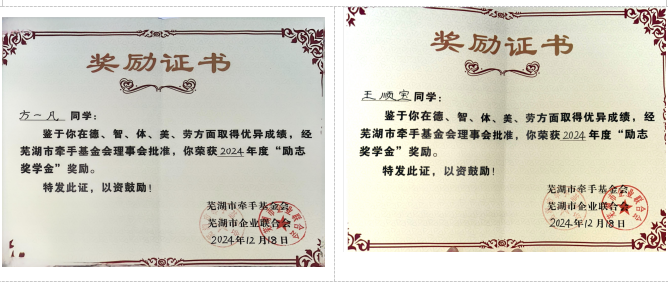此次励志奖学金的颁发仪式,不仅是对那些孜孜不倦、成绩卓越的获奖学生的一份崇高肯定与深切鼓励,更是如同璀璨星辰般照亮全校学生心灵的一束光芒,成为激励每一位学子不断前行、自我超越的强大动力与鞭策。在芜湖市牵手基金会慷慨无私的支持和学校无微不至的关怀下,全体同学将以这些杰出的获奖者为镜,燃起心中更旺的求知之火,以更加饱满的热情、更加坚韧的意志,投入学习之中,不懈追求,持续进步,为自己的梦想插上翅膀,为铸就未来辉煌灿烂的人生篇章而奋力搏击,勇往直前。