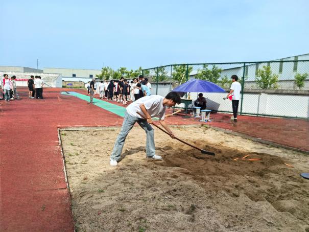 赛场上,田径运动员们步伐矫健,尽情诠释着青春的蓬勃力量;跳高与跳远场地中,选手们助跑、起跳、腾空的连贯动作,每一个瞬间都张力十足;铅球场地内,选手们将沉甸甸的铅球奋力掷出,在天空中勾勒出一道充满力量感的抛物线。最终,23、24运动训练班汤琪在男子铅球项目,以14.26米的成绩打破校运动会记录;23电子商务班田俊杰在男子跳高项目,以1.81米成绩打破校运动会记录。赛场外,裁判员严谨执裁,精准记录每一份成绩;志愿者步履不停,悉心为赛事保驾护航;啦啦队激情助威,用呐喊点燃赛场斗志。