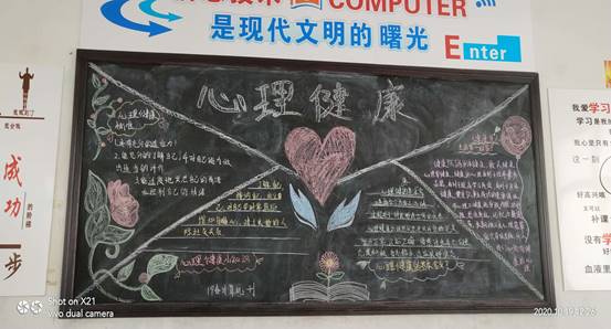 (图为班级“心理健康”主题黑板报展示)