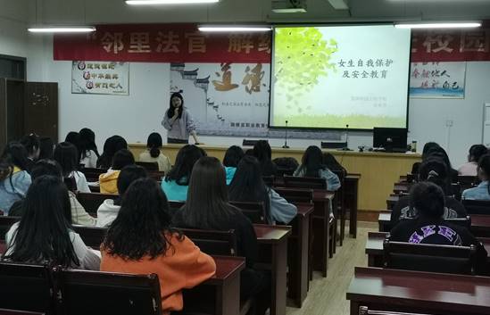 (图为我校“女生自我保护及安全教育”讲座)