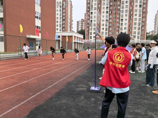 赛场上,田径运动员们步伐矫健,尽情诠释着青春的蓬勃力量;跳高与跳远场地中,选手们助跑、起跳、腾空的连贯动作,每一个瞬间都张力十足;铅球场地内,选手们将沉甸甸的铅球奋力掷出,在天空中勾勒出一道充满力量感的抛物线。最终,23、24运动训练班汤琪在男子铅球项目,以14.26米的成绩打破校运动会记录;23电子商务班田俊杰在男子跳高项目,以1.81米成绩打破校运动会记录。赛场外,裁判员严谨执裁,精准记录每一份成绩;志愿者步履不停,悉心为赛事保驾护航;啦啦队激情助威,用呐喊点燃赛场斗志。
