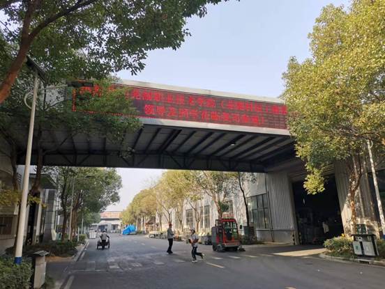 公司董事长肖明海在门口欢迎大家的到来